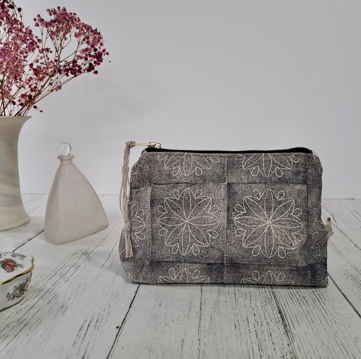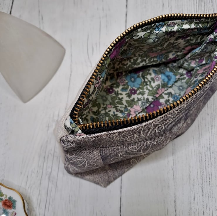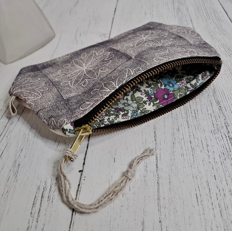 A lovely hand printed Zipped Cosmetic Bag. This would make an ideal gift or a treat for yourself and is perfect for carrying cosmetics or jewellery