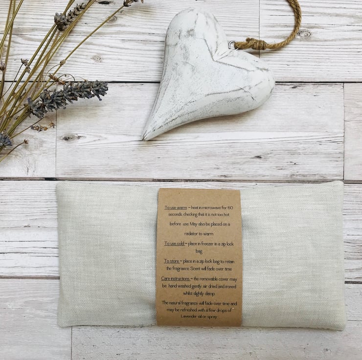 The interior pillow is made from natural calico and filled with Flax seeds for gentle acupressure and to block out light. The fragrance of the Yorkshire Lavender flowers can help to relieve tension and stress