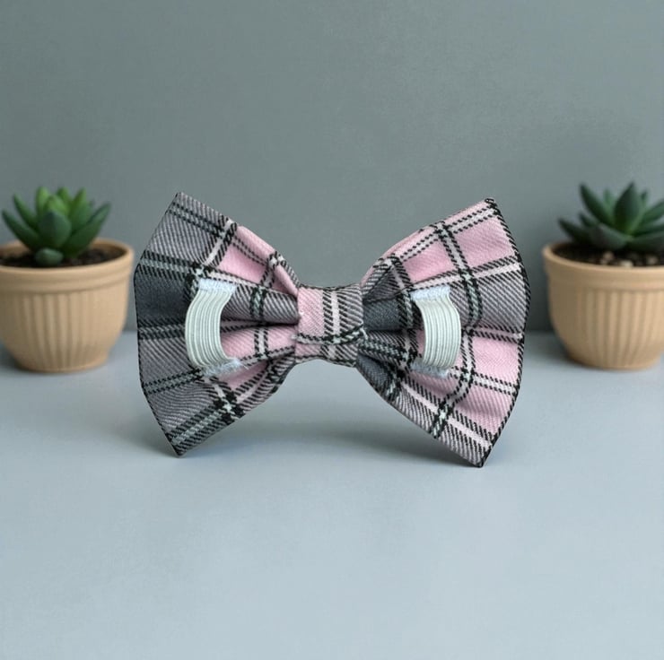 Pink & Grey Tartan Handmade Dog Bow Tie