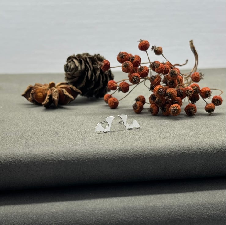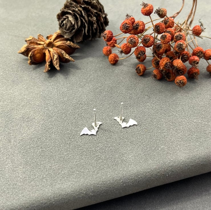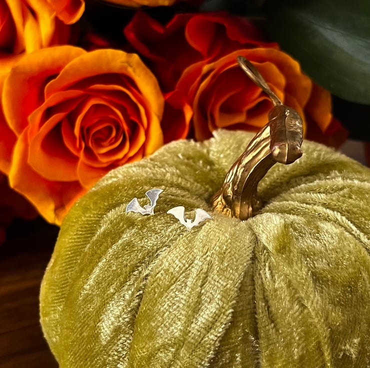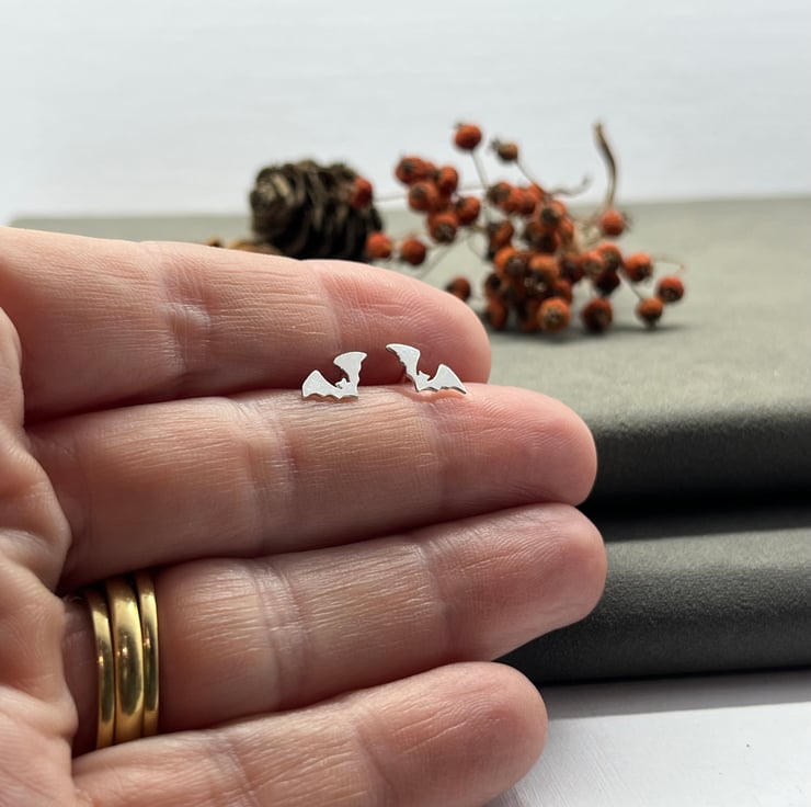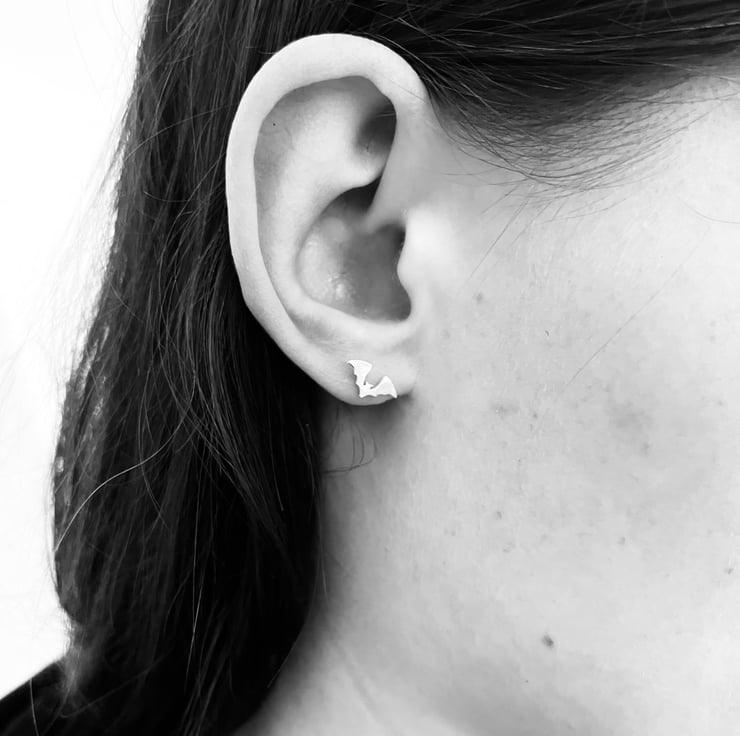 Bats- 1.1cm wide, with the earring post on one wing so that they sit in the ear at an angle.