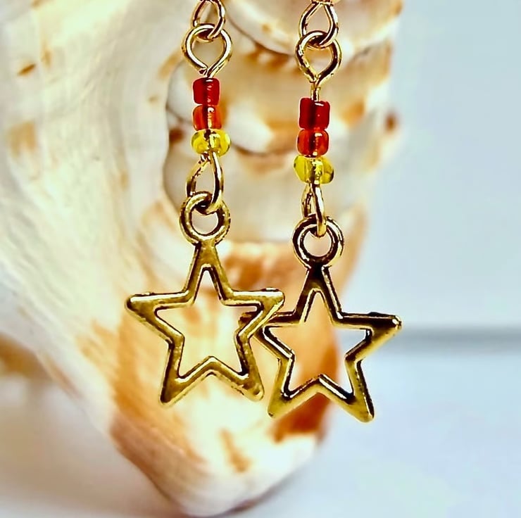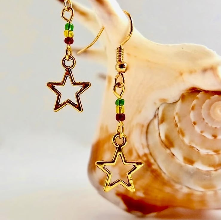 The second pair feature an open gold star measuring approximately 12mm topped with a trio of translucent glass beads in festive colours. There are three slightly different colour schemes, which will be chosen at random - add a note at checkout if you have a preference.