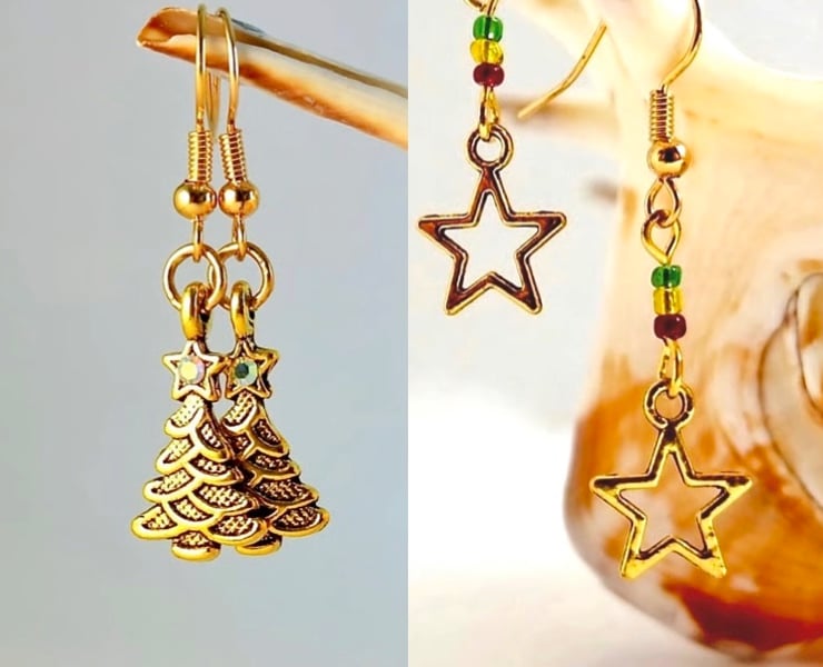 A twin-pack of Christmas earrings featuring a pair of gold Christmas tree charm and a pair of gold star charm earrings at a special price, including postage within mainland UK, as I no longer make this style.