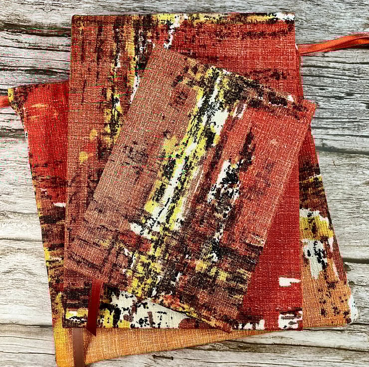 This listing is for one drawstring bag. For matching notebooks please see the last two photos