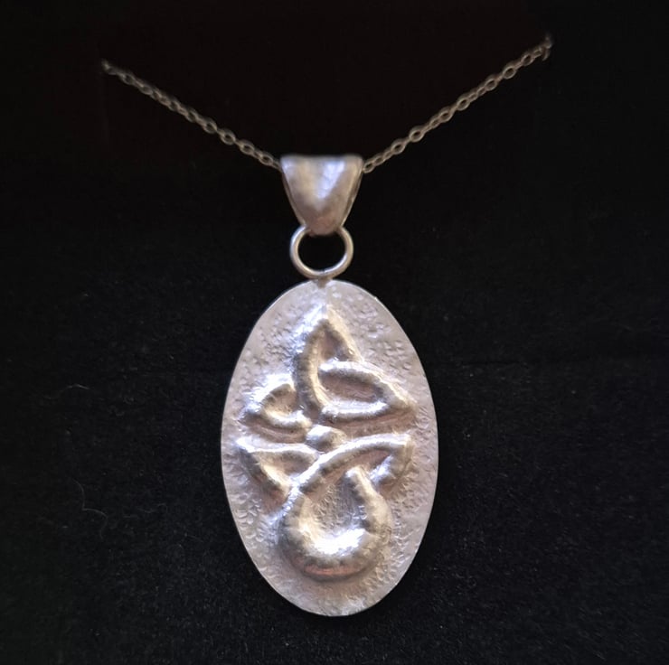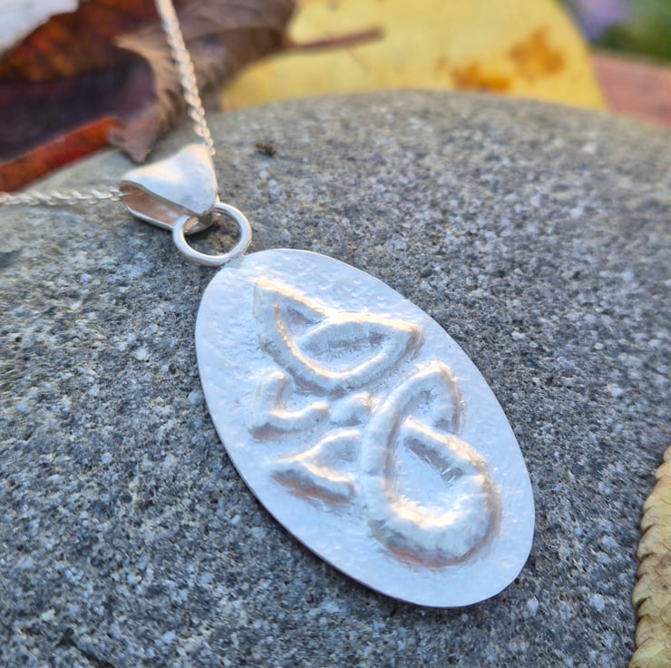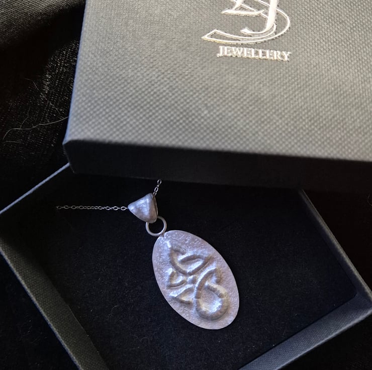Discover a timeless treasure with this fine silver pendant, meticulously handmade from scratch and inspired by intricate Celtic patterns. Using the ancient artistry of chase and repousse, this piece is a unique and heartfelt gift for those who cherish history-inspired jewelry and unparalleled craftsmanship