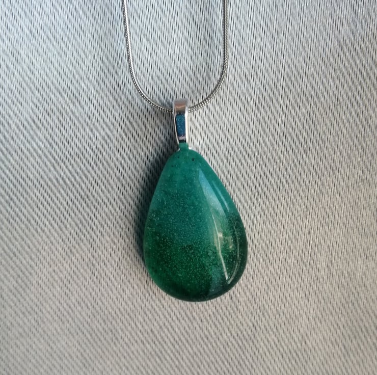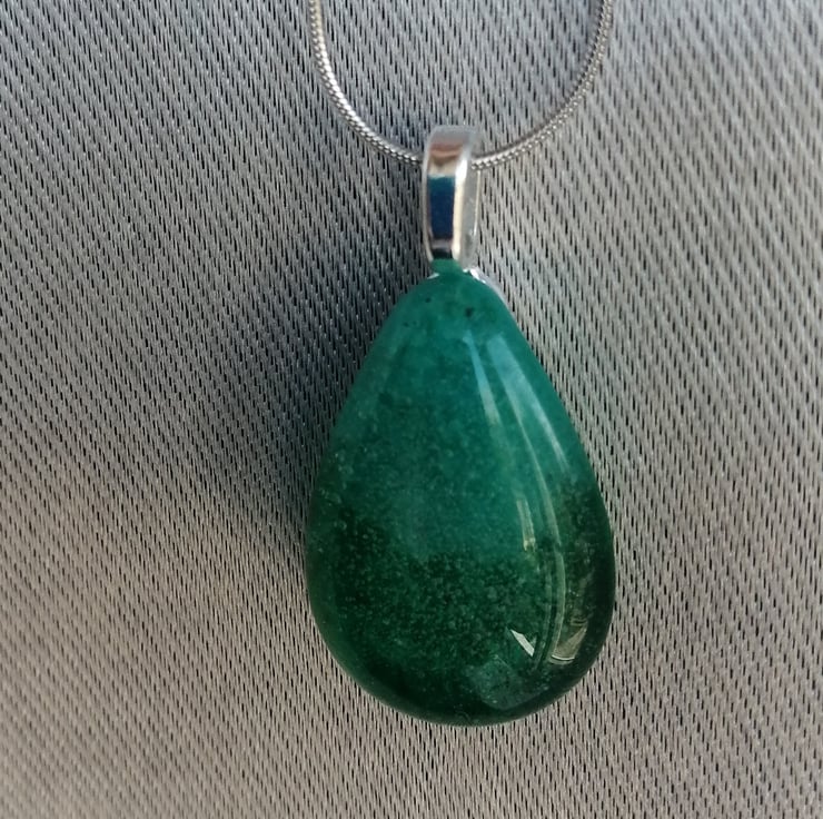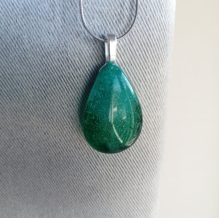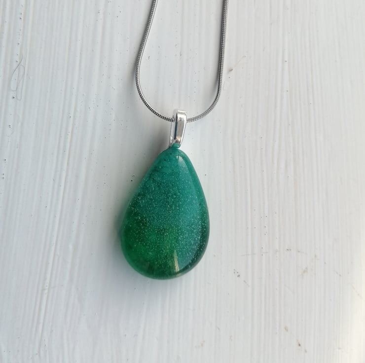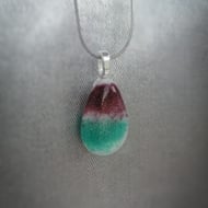 Each colourful necklace has been individually made using glass frit (ground up glass) which is fused in a kiln then has a silver plated bail attached. They measure approx 3cm by 2cm but some are slightly larger.