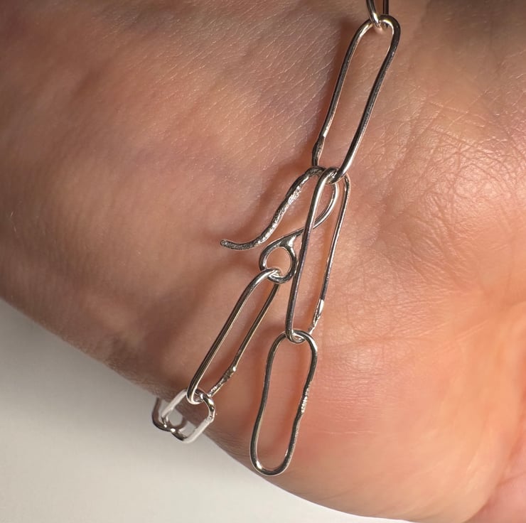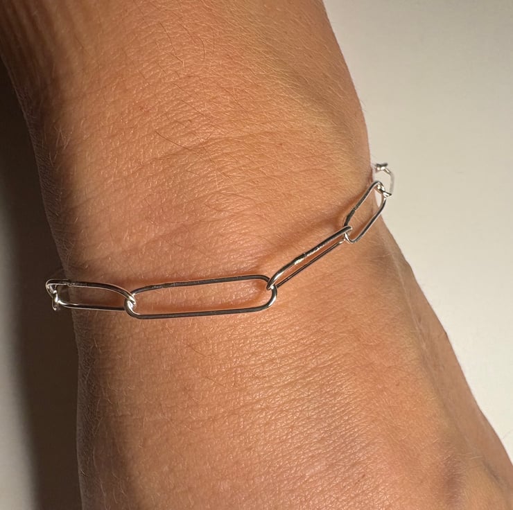 Sterling silver paperclip chain bracelet - handmade - adjustable length