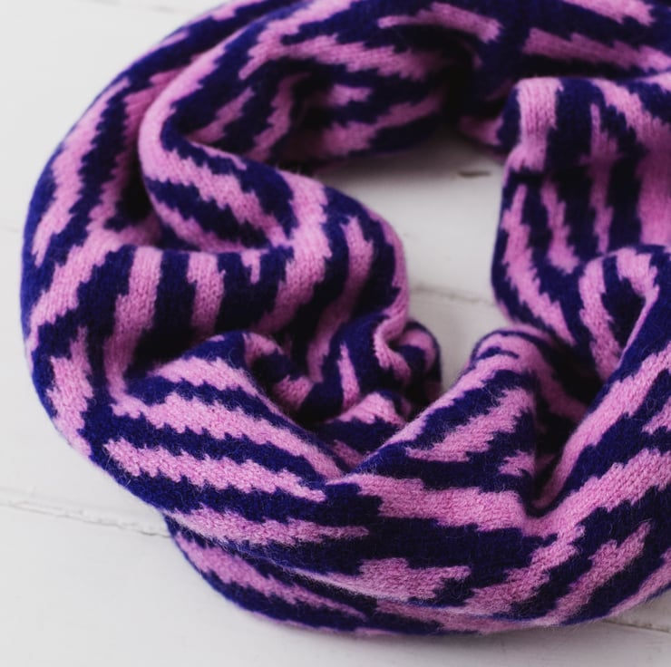 Stylish snood in our Zebra pattern handmade using a soft, rich lambswool this makes the perfect accessory for autumn/winter.