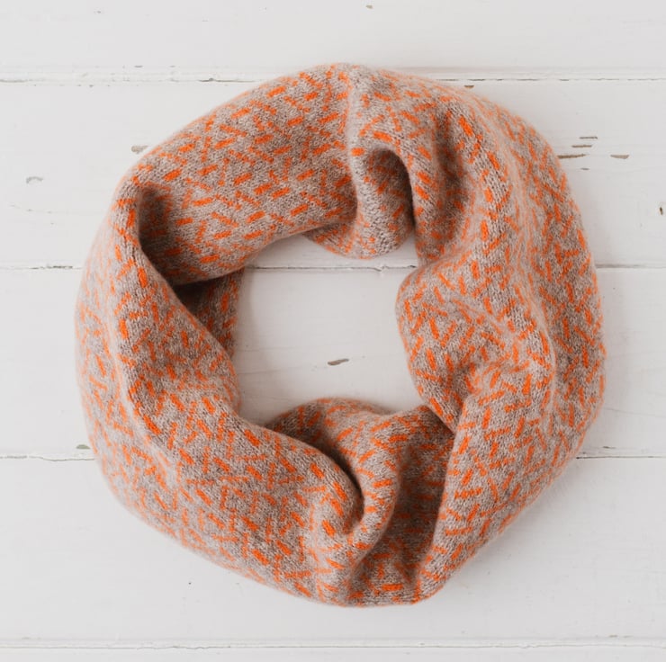 Stylish snood in our scatter pattern handmade using a soft, rich lambswool this makes the perfect accessory for autumn/winter.