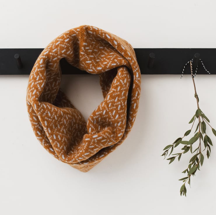Stylish snood in our scatter pattern handmade using a soft, rich lambswool this makes the perfect accessory for autumn/winter.