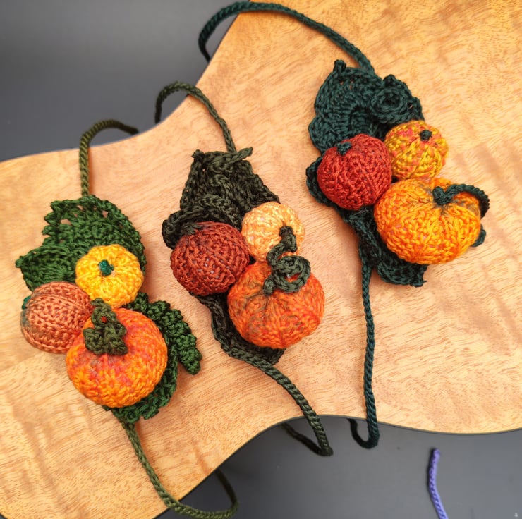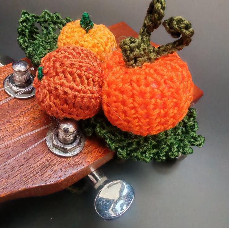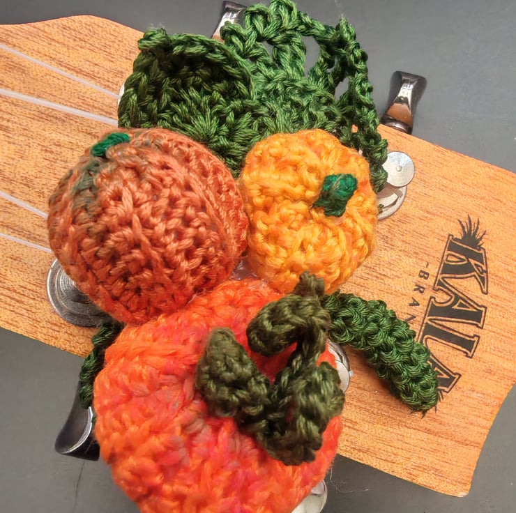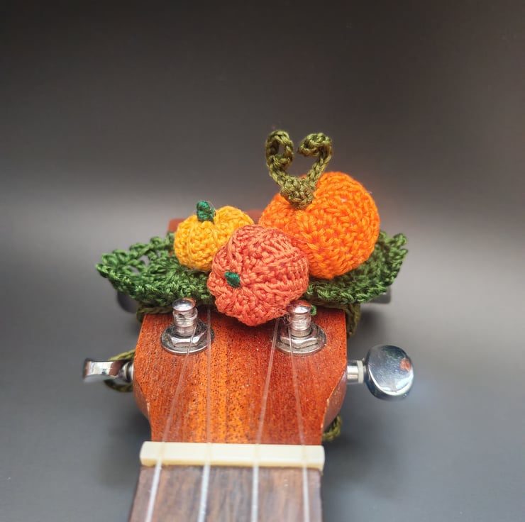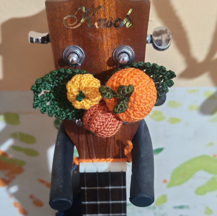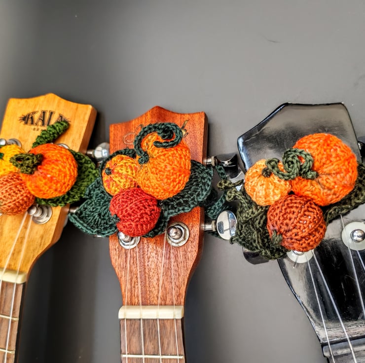 Perfect, pumpkin corsages. These are the ideal present for a musician or,even better, as a cheeky little treat just for you. They are designed to tie around your ukulele headstock for your club Halloween meets, the Autumn festivals, Fall gigs or to add to your online content. Don't have a uke? They also fit an adult human wrist so you can use them on occasions you can't take you ukulele (although, what's the point in going if you can't take your uke?).