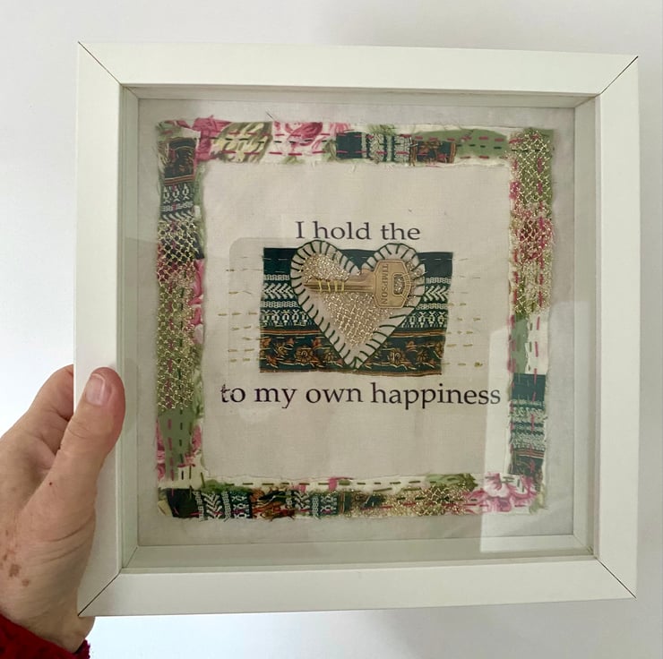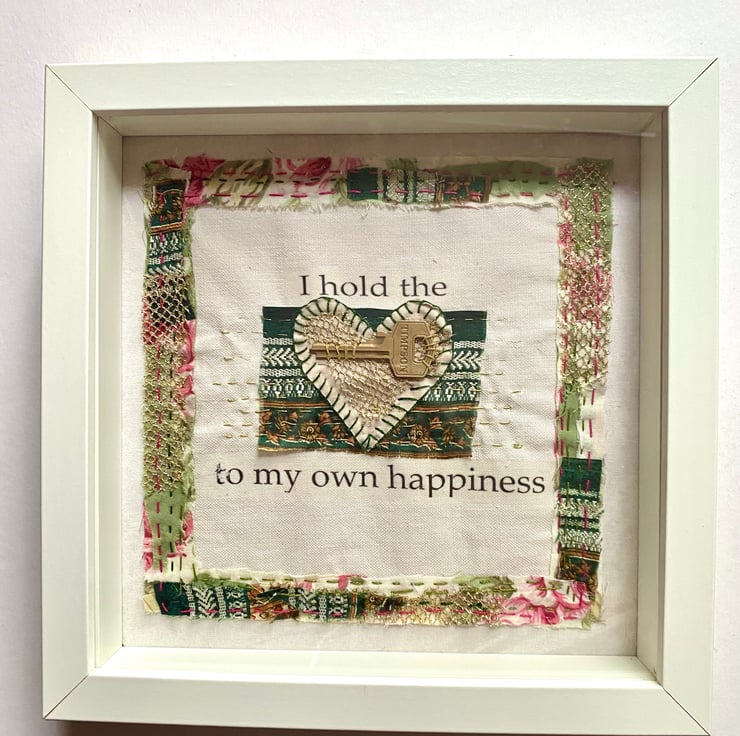 The key, fabrics and frame have all been given a new purpose and life, making this a very eco friendly gift.