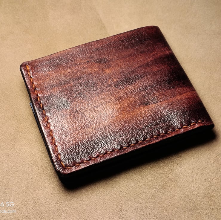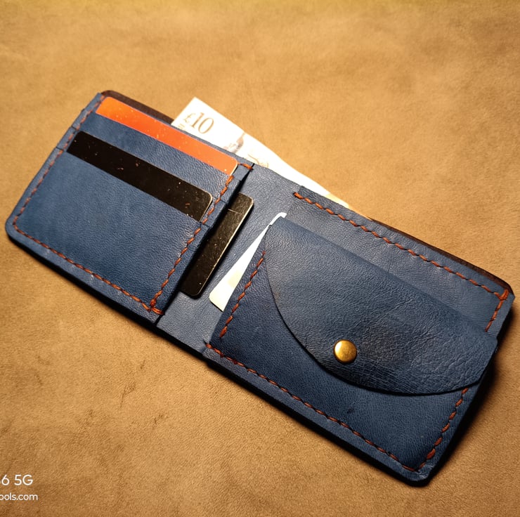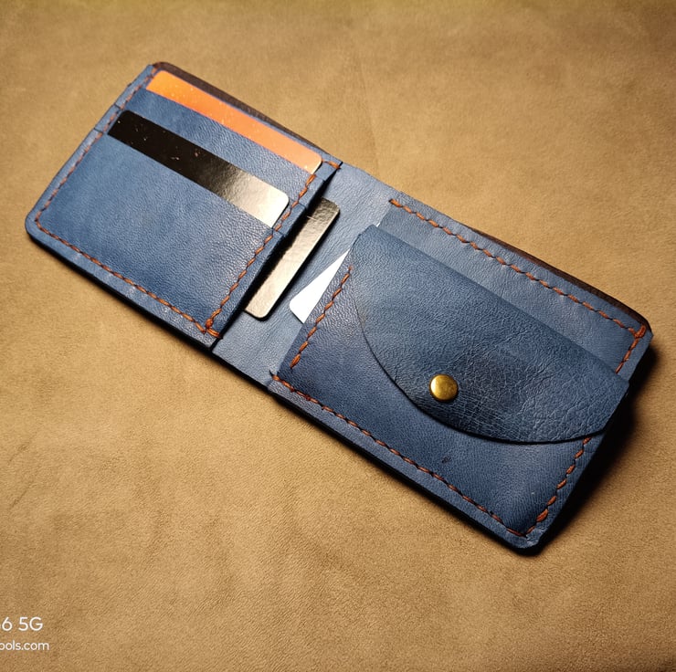 Hand dye pattern veg Tan leather outside, blue dye Veg Tanned Leather inside.