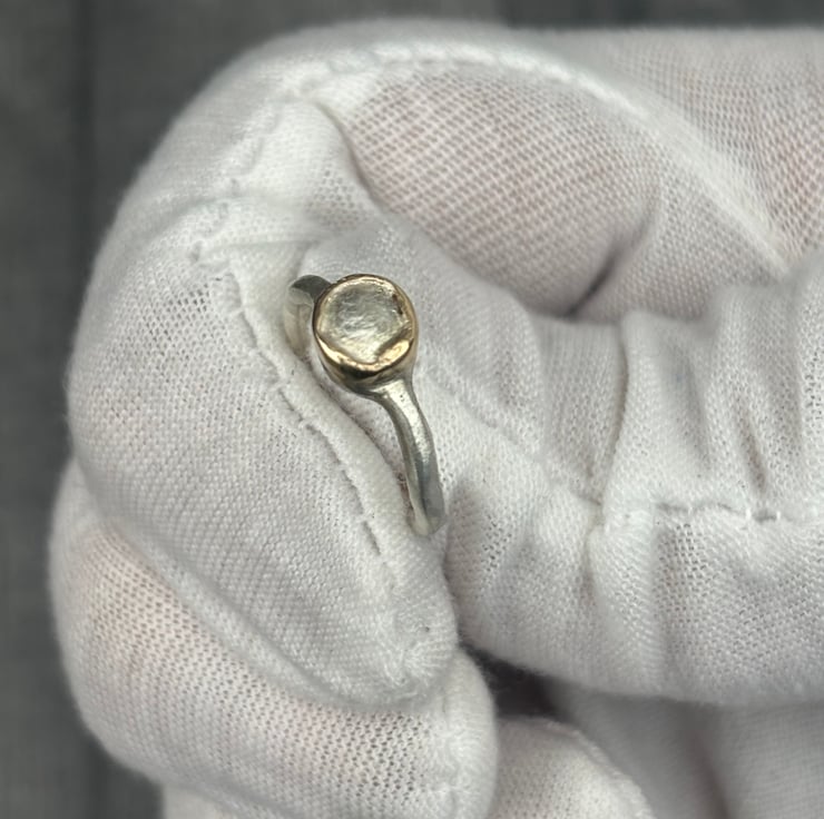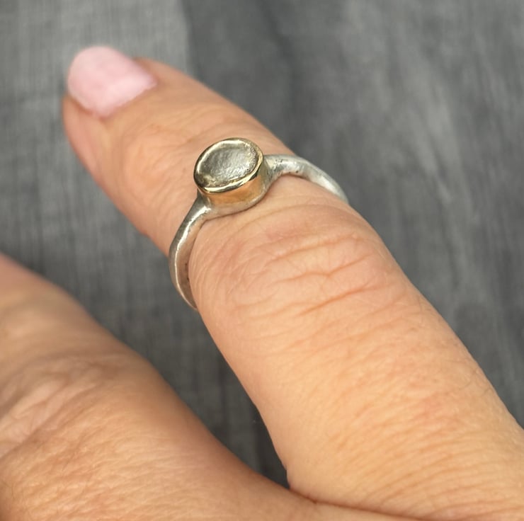 Silver Pebble Ring, pebble ring, Freeform silver ring, mixed metals ring ,