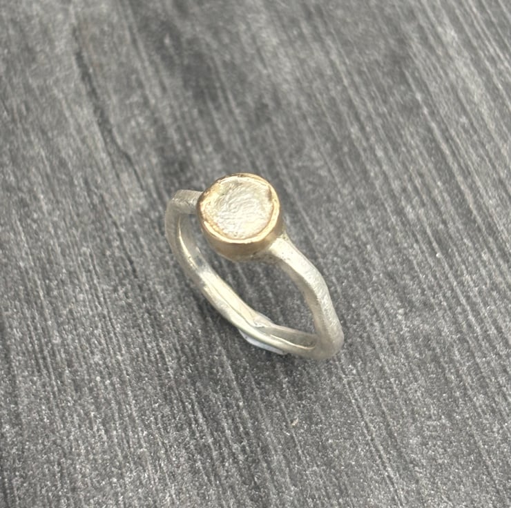 Silver Pebble Ring, pebble  ring, Freeform silver ring, mixed metals ring ,