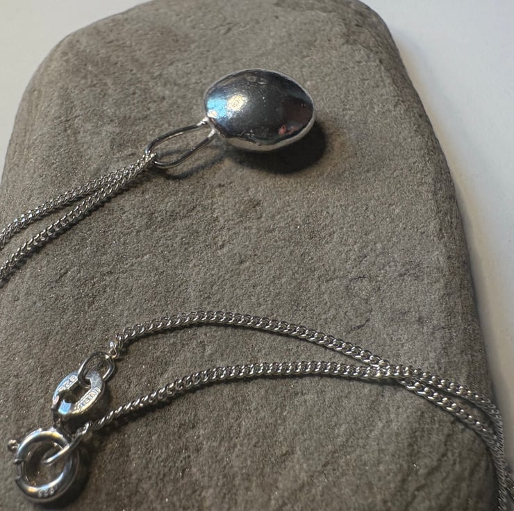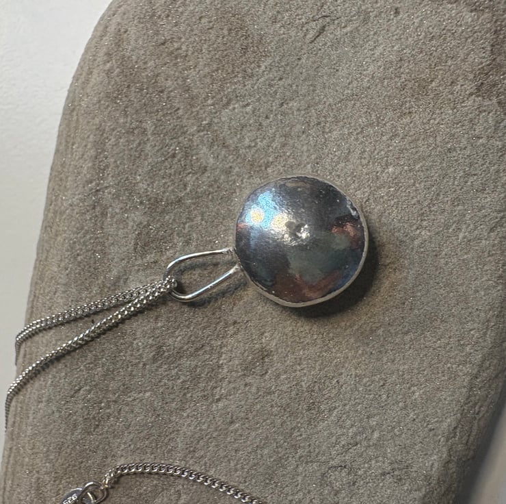 Sterling silver minstrel textured pendant on a silver chain - sandcast pendant