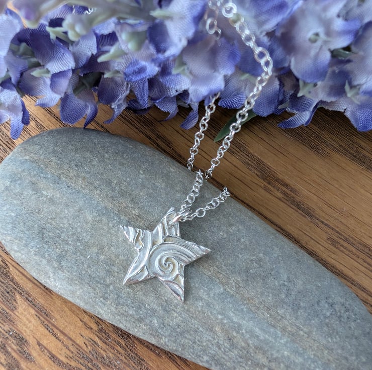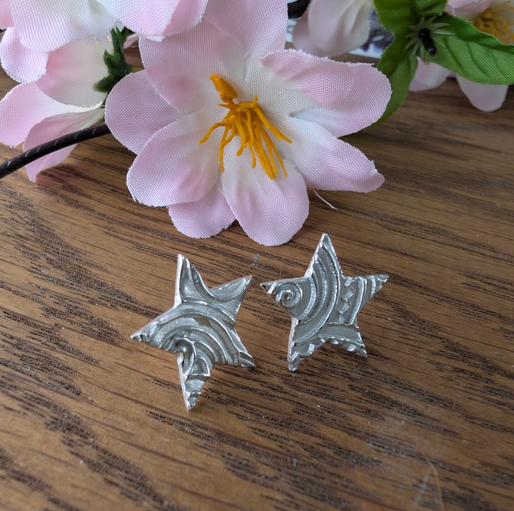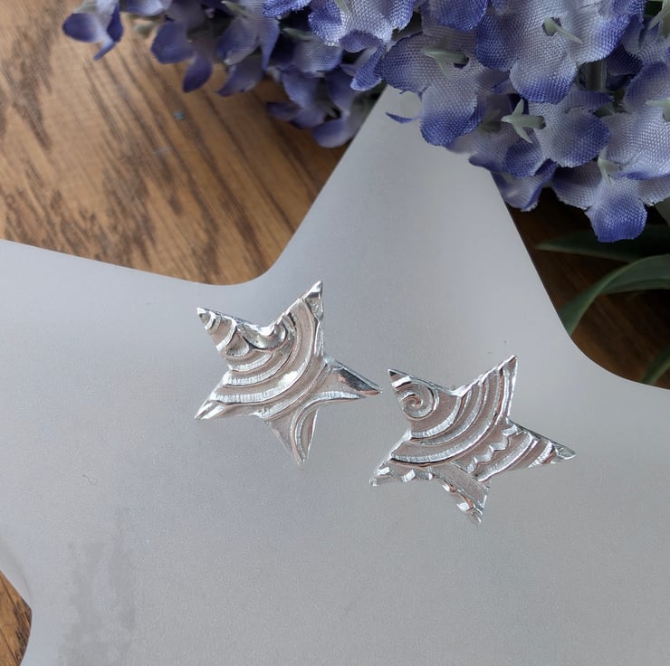 These are fine silver star shaped Shooting Star textured stud earrings. Make them extra special with a matching pendant at no extra cost in postage.