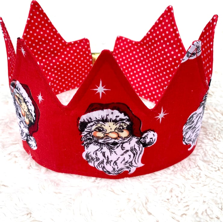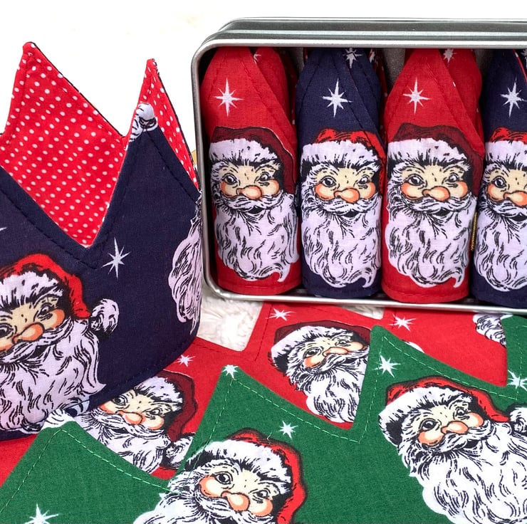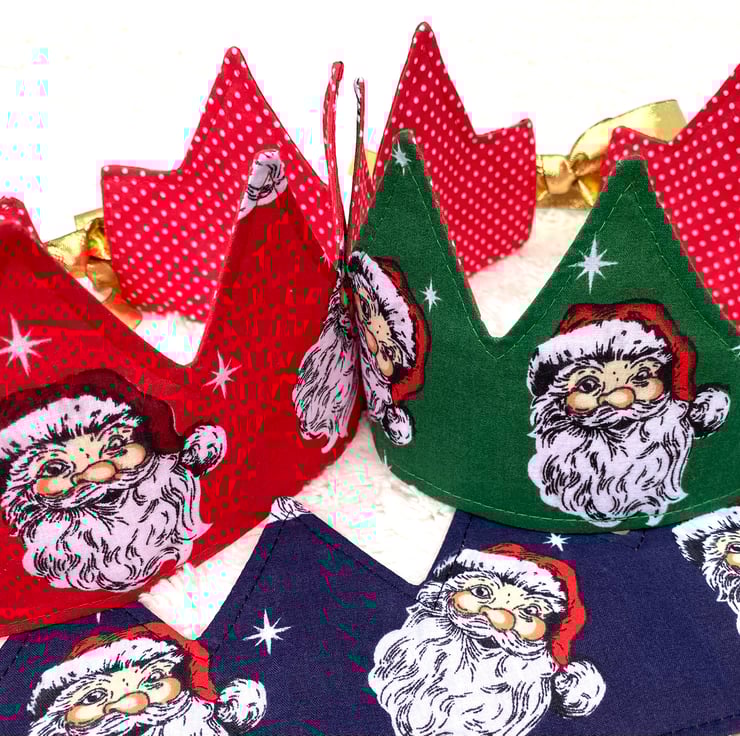 Santa Christmas Cracker Hats, Reusable Reversible Fabric Crowns, Party Hats