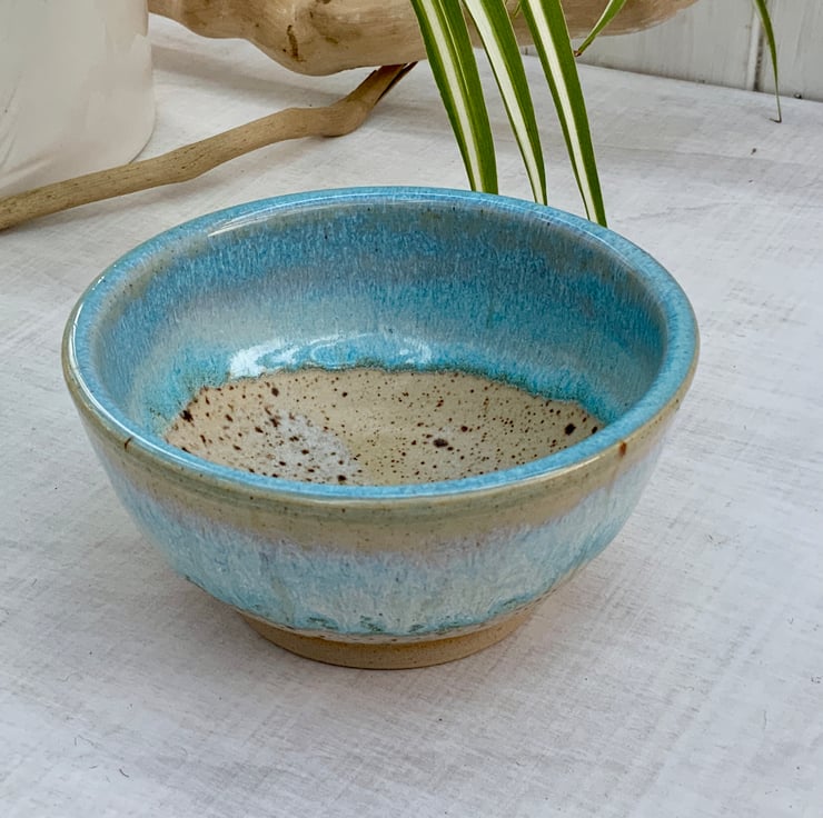 This beautiful little bowl is perfect for rings, trinkets or as a display piece. It has been wheel-thrown using stoneware clay and hand glazed with a combination of Winter Wood and Norse Blue glazes. The flow of the glazes and the hand turned foot make this an elegant item to enhance your home.