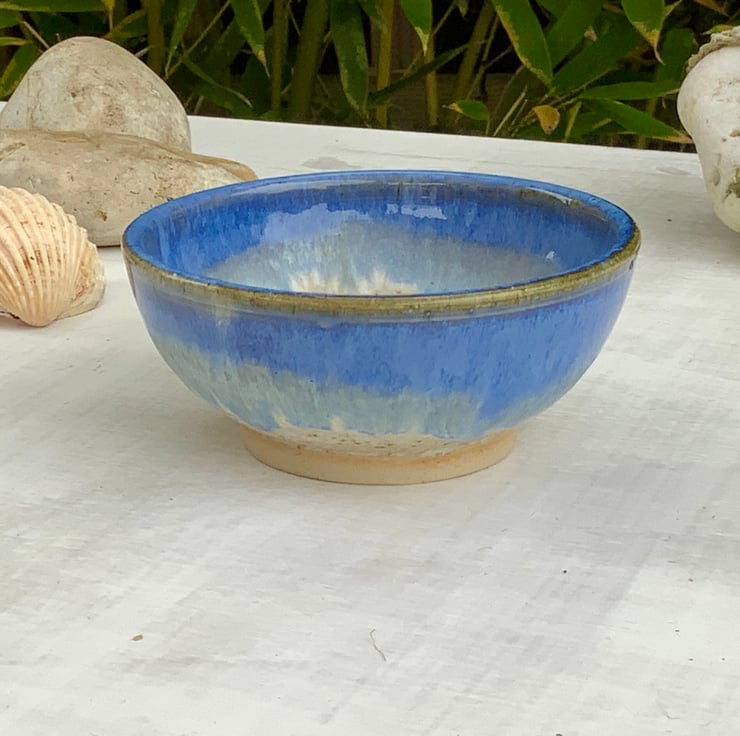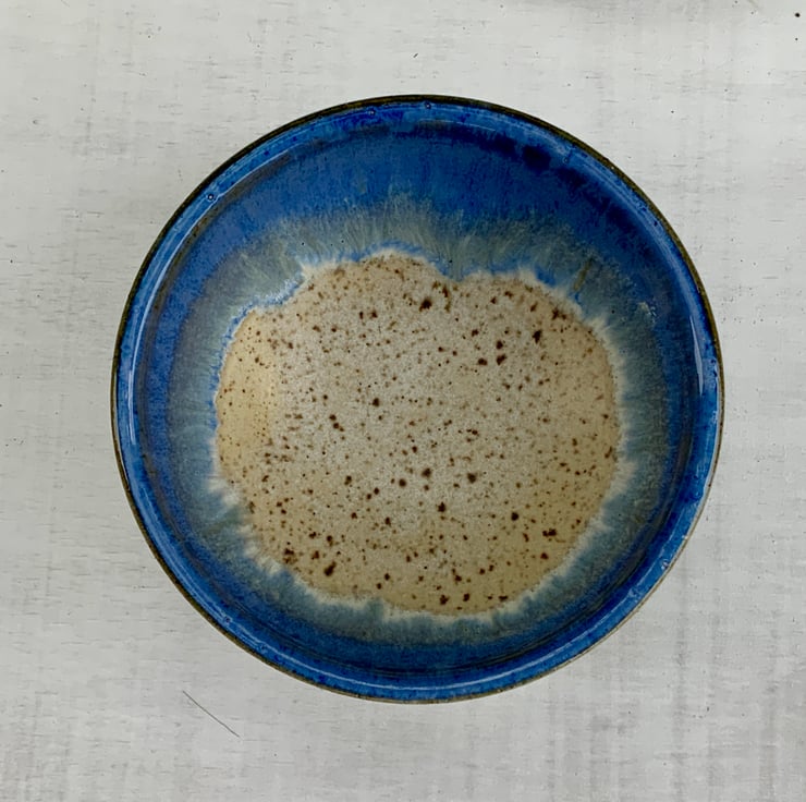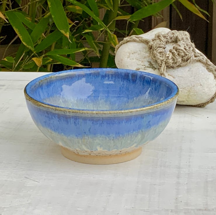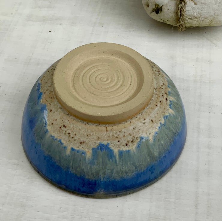 This beautiful little bowl is perfect for rings, trinkets or as a display piece. It has been wheel-thrown using stoneware clay and hand glazed with a combination of Winter Wood and Midnight Rain glazes. The flow of the glazes and the hand turned foot make this an elegant item to enhance your home.