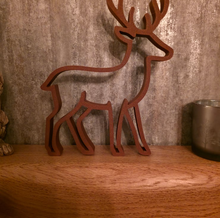 Minimalist Reindeer Christmas Decoration – Modern 3D Printed Brown Deer