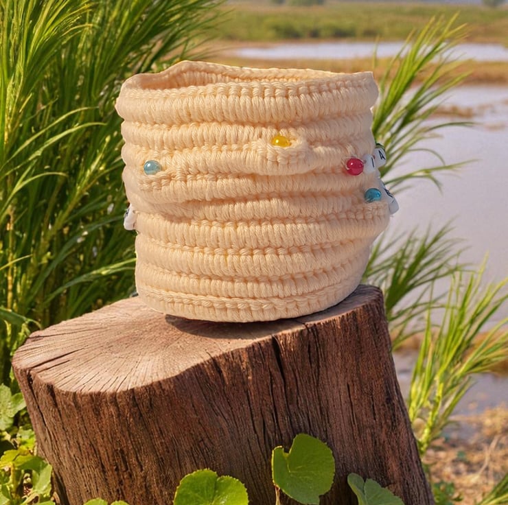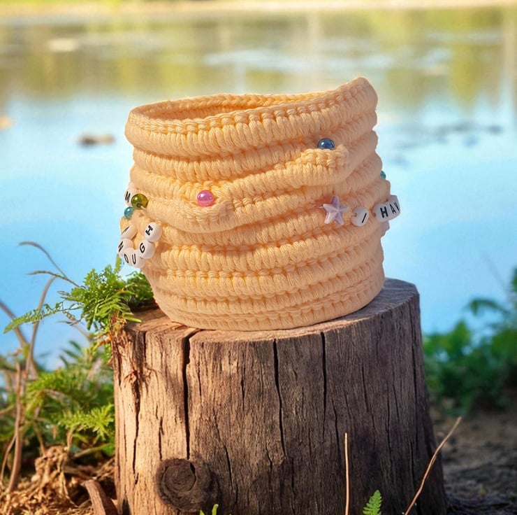 Perfect for holding small essentials, yarn, self-care items, or simply displaying as a piece of mindful décor. Each bead is thoughtfully placed to inspire calm, confidence, and abundance in your home.