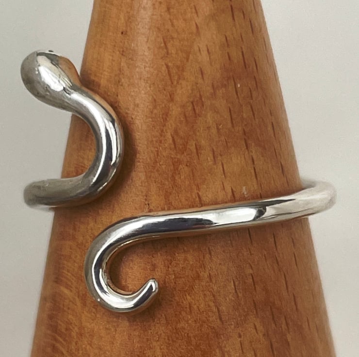 The journey begins with thick sterling silver round wire. The head is formed by melting the tip, then carefully filed and smoothed by hand with emery paper—refining raw material into sacred form. The ring itself is shaped using a rawhide mallet and ring triblet, echoing the coiling motion of Kundalini energy rising through the chakras. Finally, the tail is tapered and filed to completion, symbolising the serpent’s graceful exit and the cyclical nature of spiritual growth.