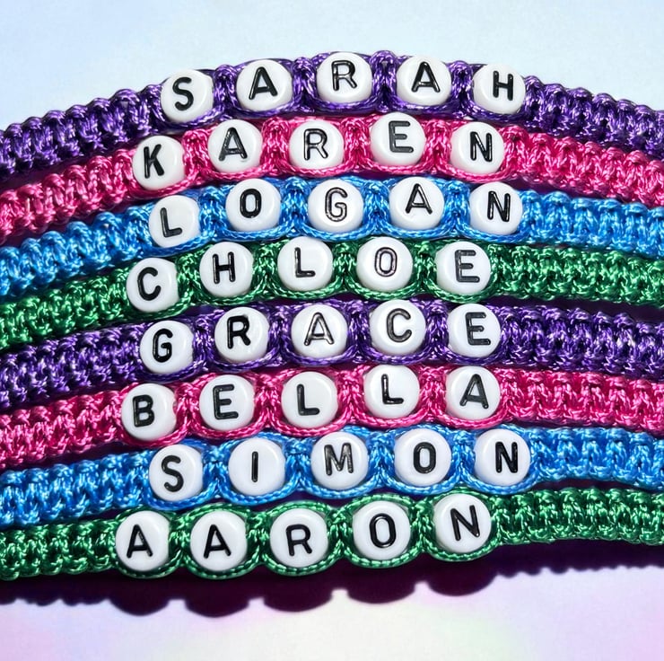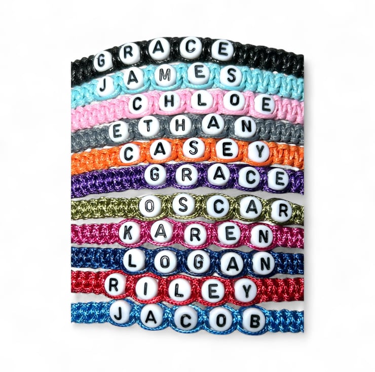 Personalized bracelets in many colours. Custom made to order. Choose from the following colours: