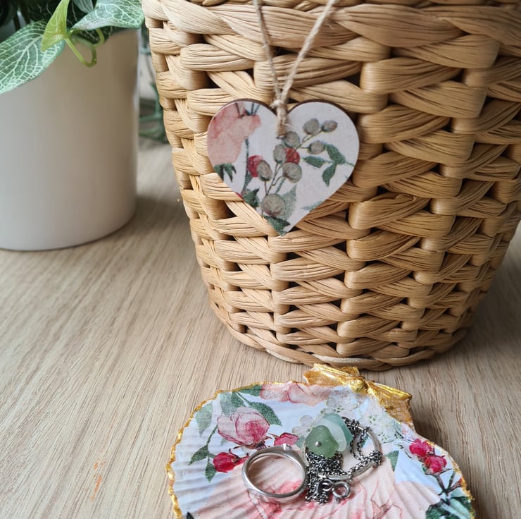 A small wooden decoration is included which would look lovely alongside the shell - perhaps tied to a planter or vase. The dish would be perfect on a dressing table for your jewellery, and can also be used elsewhere in the home, for example, for coins, keys or in the office for paperclips etc. It would add a styish touch used as decoration in any room.