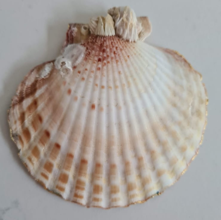The shell measures approximately 8.5 x 8.5cm and I have left it natural on the reverse to appreciate the subtle colours of the shell.