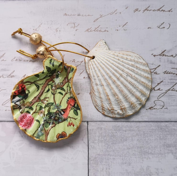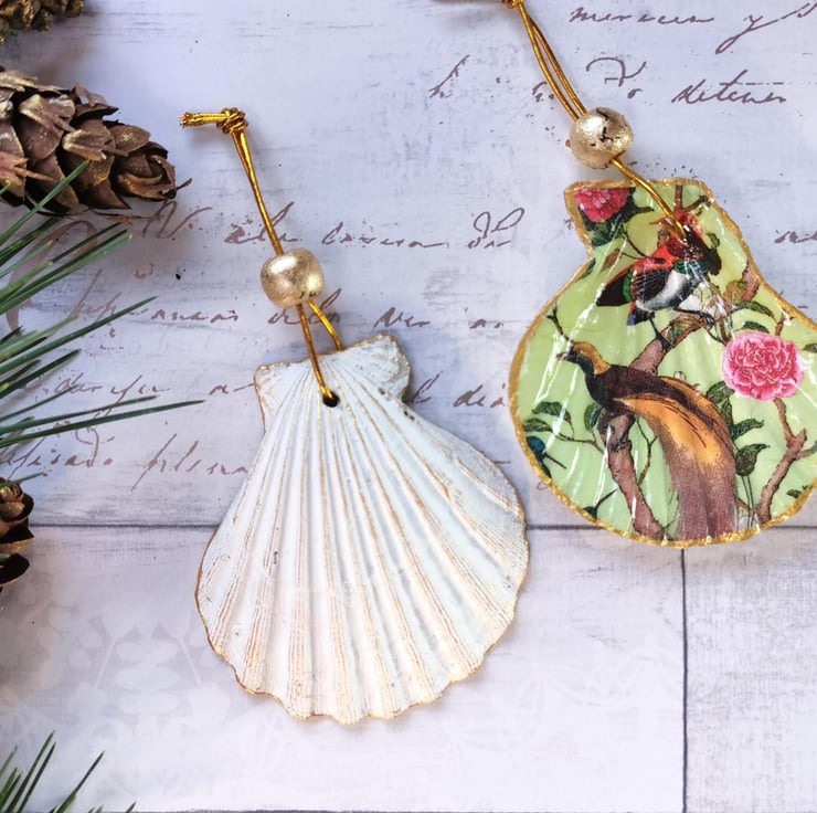 Handmade from real scallop shells and glazed with resin, these hanging ornaments are fab for hanging on a Christmas tree or for all year round. They also look great as cabinet key tassels or hanging on a cupboard door knob.
