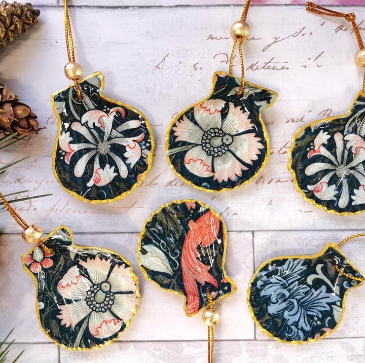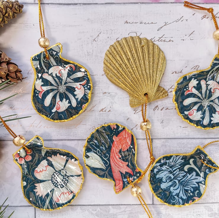 Handmade from real scallop shells and glazed with resin, these hanging ornaments are fab for hanging on a Christmas tree instead of traditional baubles or for all year round. They also look great as cabinet key tassels or hanging on a cupboard door knob.
