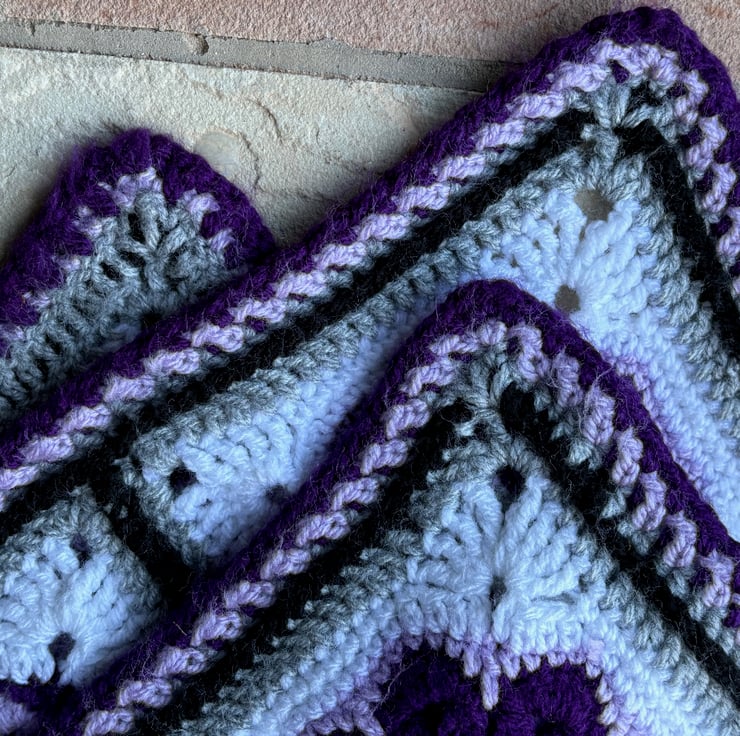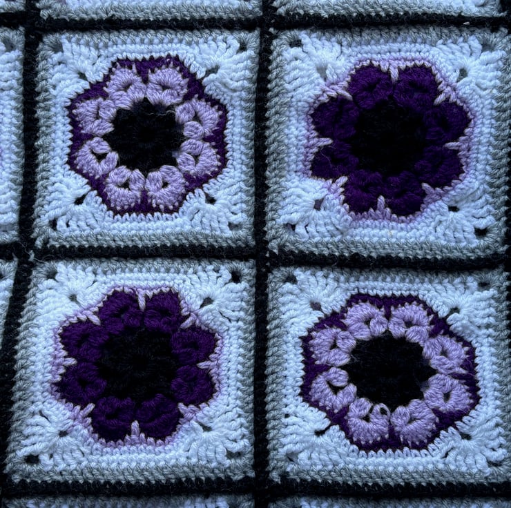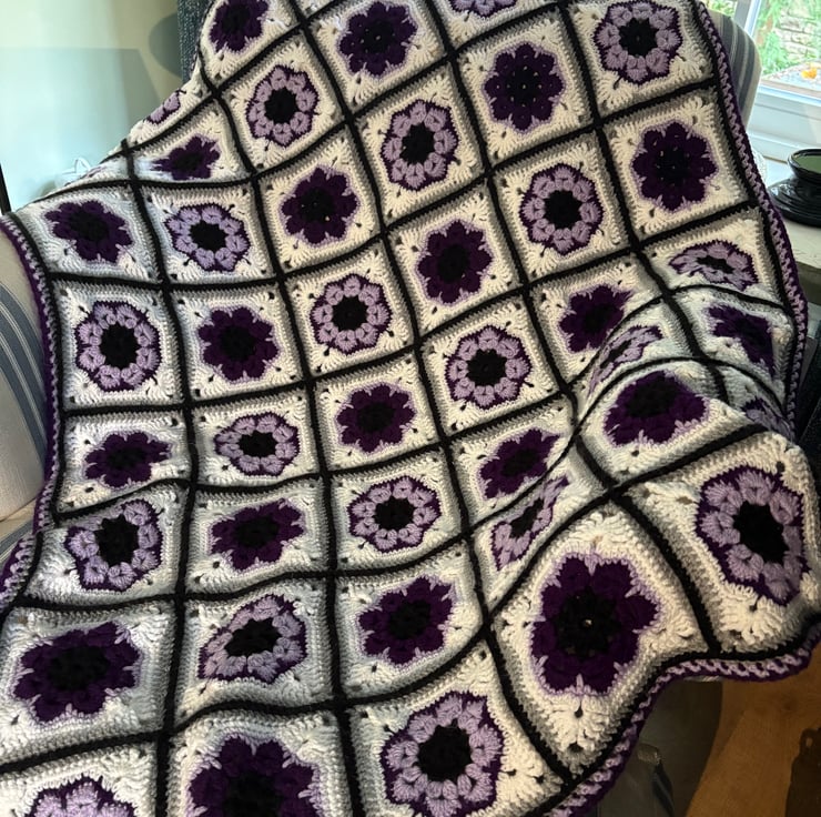 Stunning African Flower motif blanket in shades of purple