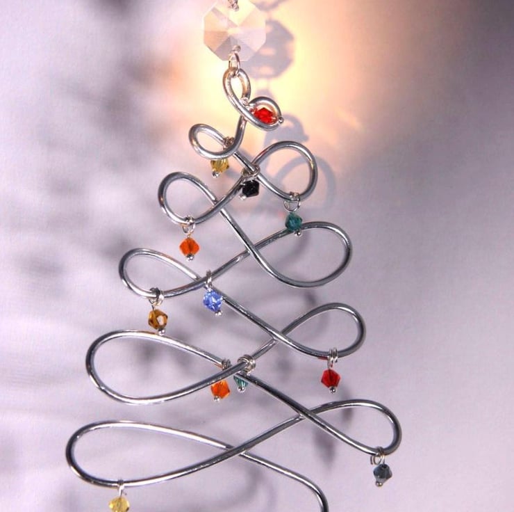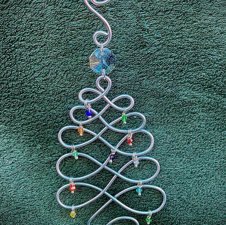 This beautiful Christmas decoration is made from silver tone 12 gauge (2mm), tarnish resistant wire with 3mm bicone crystal ornaments and a S shaped hanger.