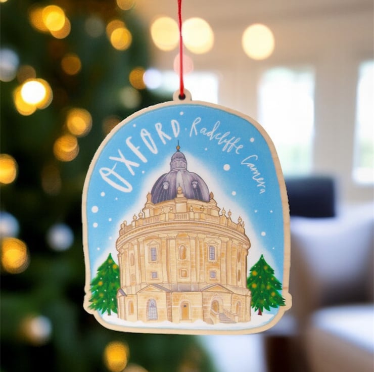 Celebrate the festive season with a touch of Oxford charm! This Wooden Christmas decoration features an illustration of the iconic Radcliffe Camera looking all wintery and festive.