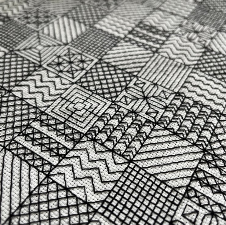 THREAD: There is just one colour of DMC 6 stranded floss. You can of course be as creative as you wish with alternative colours. Blackwork is traditionally stitched using 1 strand of thread so you will need to split your skein.