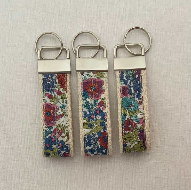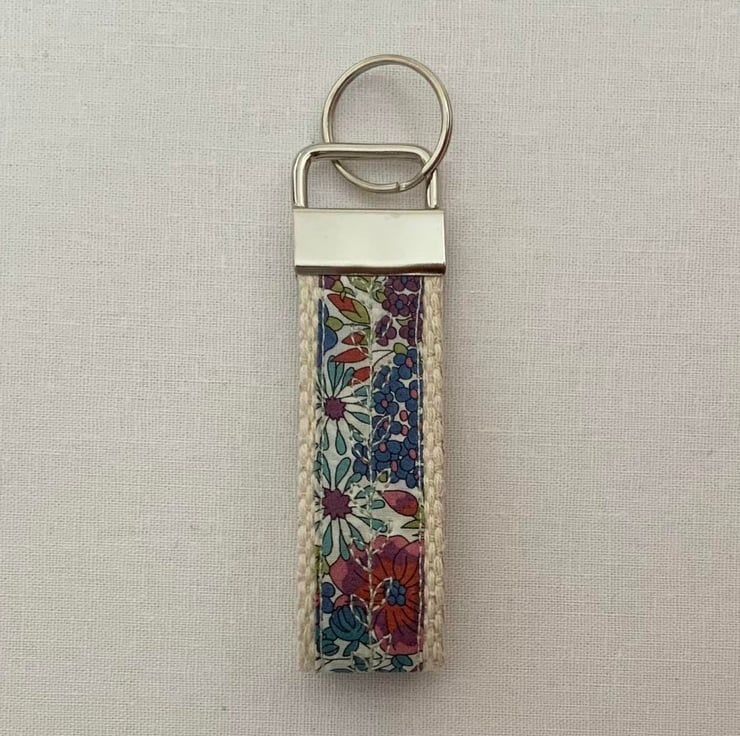 The Liberty floral is stitched onto a great quality 25mm wide Cotton webbing, making a sturdy yet delicate looking keyring.