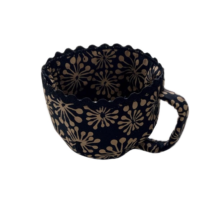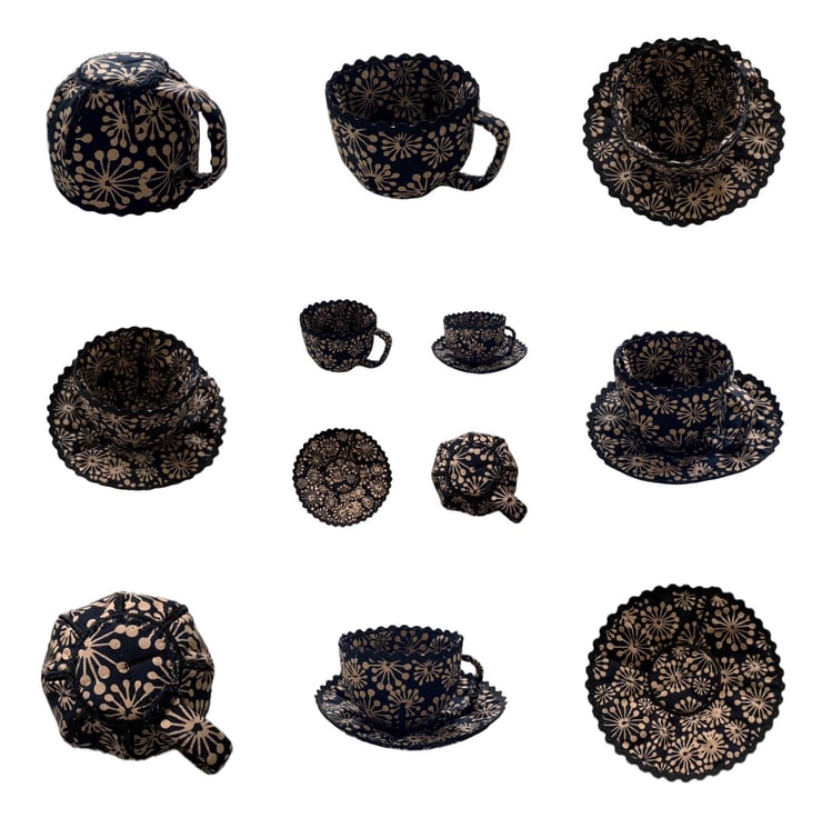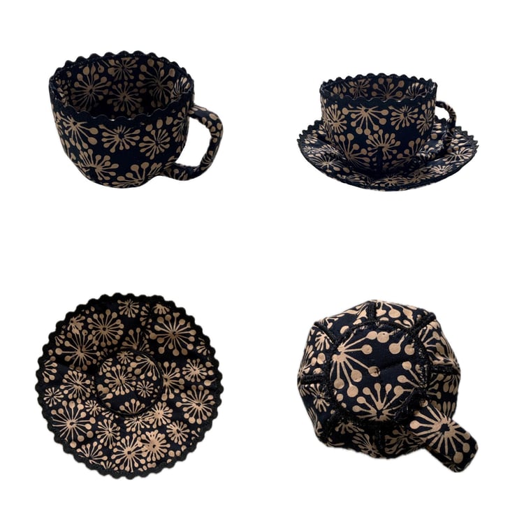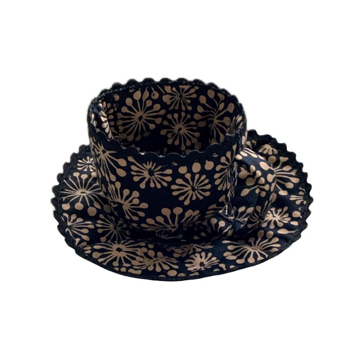 The cup and saucer is made from fabric, so not for drinking from. I thought I'd make something 3D for fun. It's just for looking cute or for storing small crafty bits and pieces.