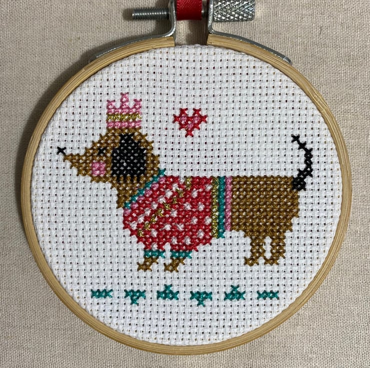 Cute sausage dog cross stitch. I like to keep my hands busy and relaxed doing cross stitch. This little three inch hoop was stitched from a kit from The Maker Arcade and was great to keep me busy whilst away from home.