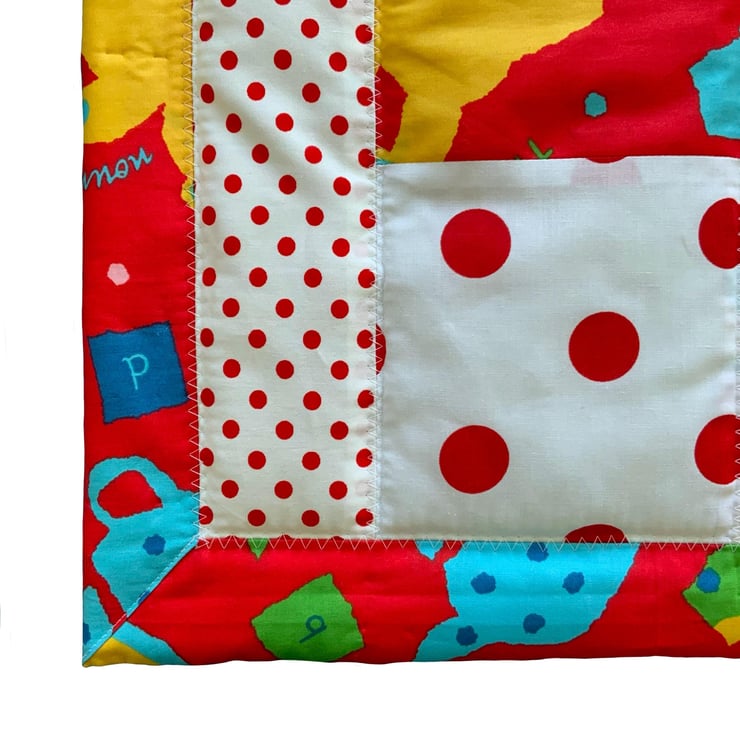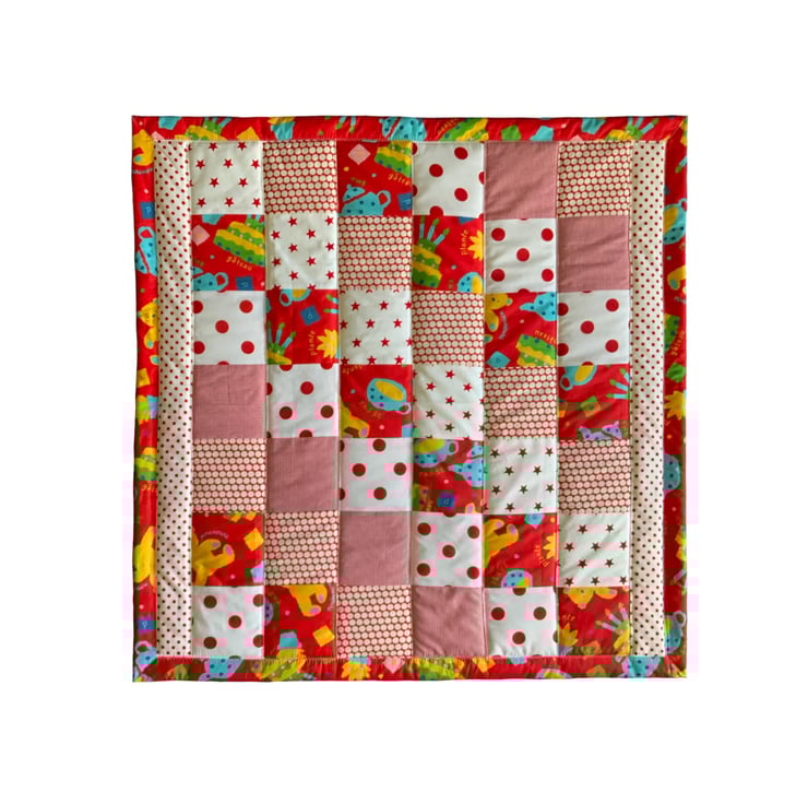 Ideal to lay on the floor for tummy time or to play on, the quilt is fully machine washable and has a soft polyester wadding (padding inside) for comfort. The quilt is machine stitched so sturdy enough to machine was and tumble dry cool.