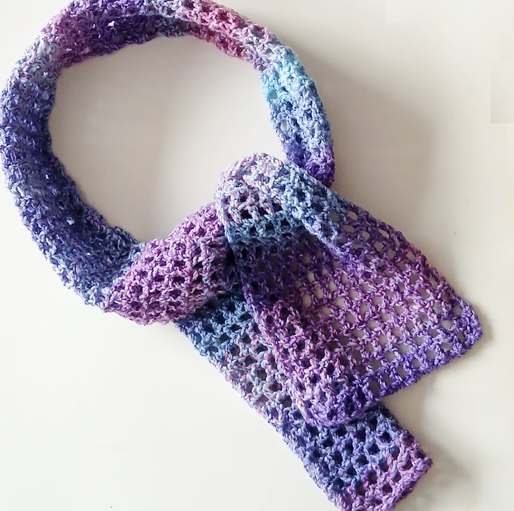 This crochet PATTERN is for a pretty scarf. To fit: child (adult). Length: 120 (180) cm or 47.5 (71.5) inches. Crochet in chunky yarn using a 9 mm crochet hook.