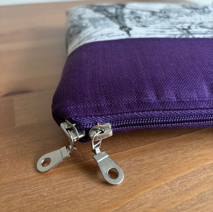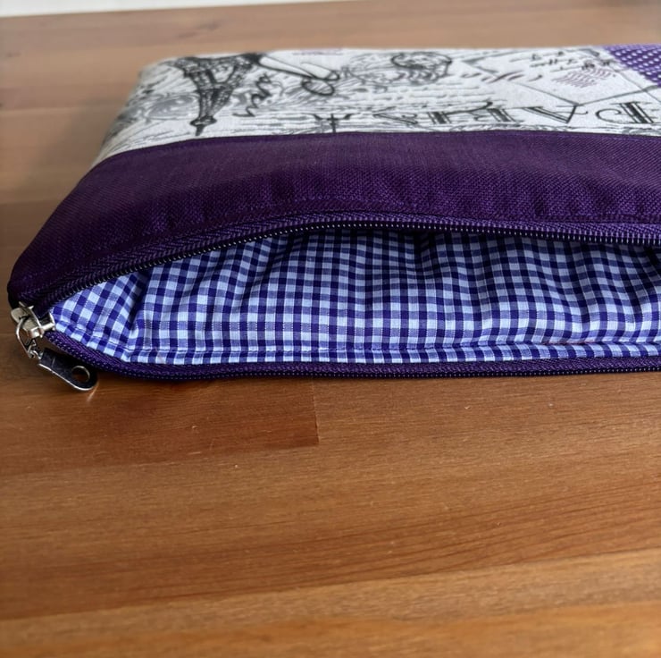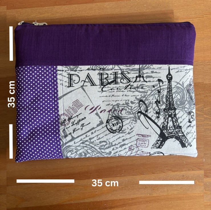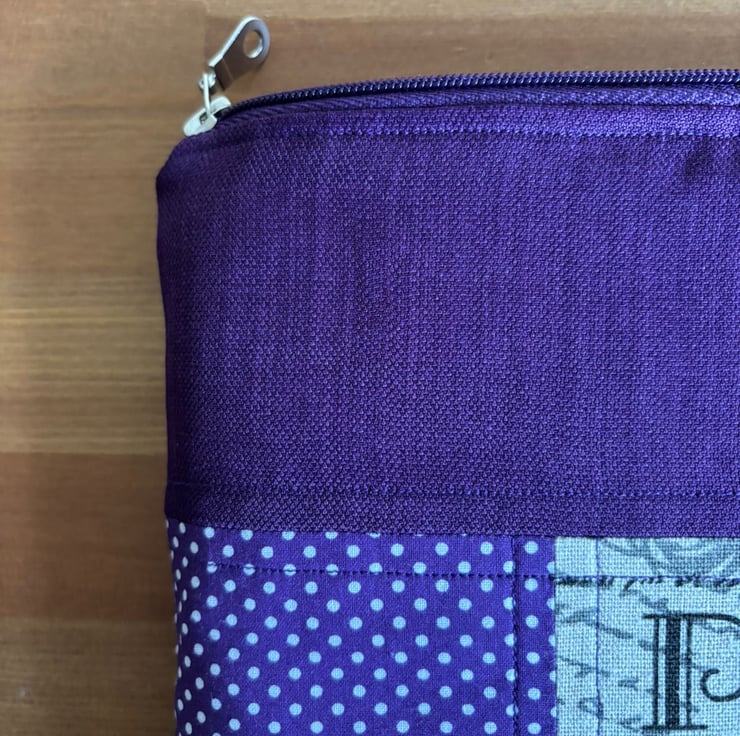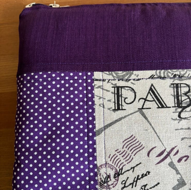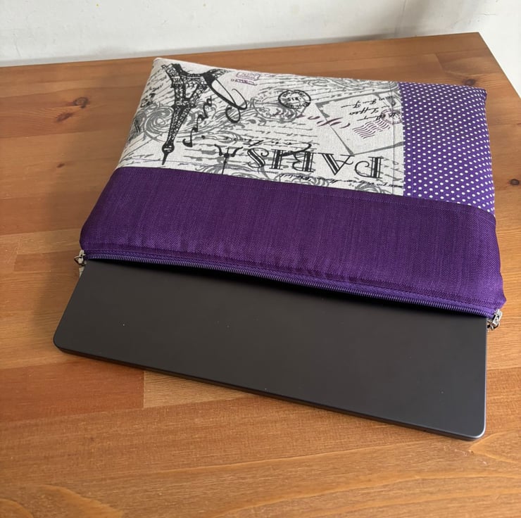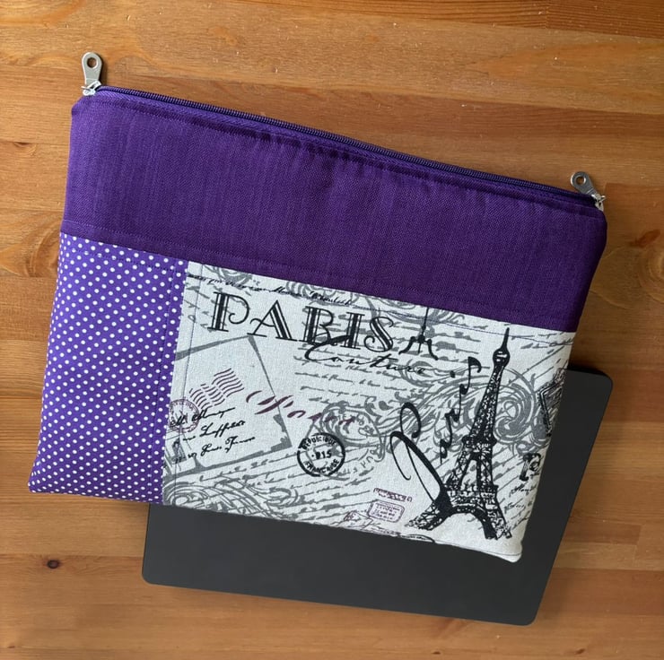Introducing our charming quilt patchwork laptop sleeve, designed to keep your laptop safe and stylish! Measuring 35 cm x 26 cm, this delightful sleeve is perfect for your 13" laptops. Made with lovely purple and beige fabric on the front, it brings a touch of warmth and personality to your tech essentials. The back features a sleek and simple plain purple design, ensuring a sophisticated look.