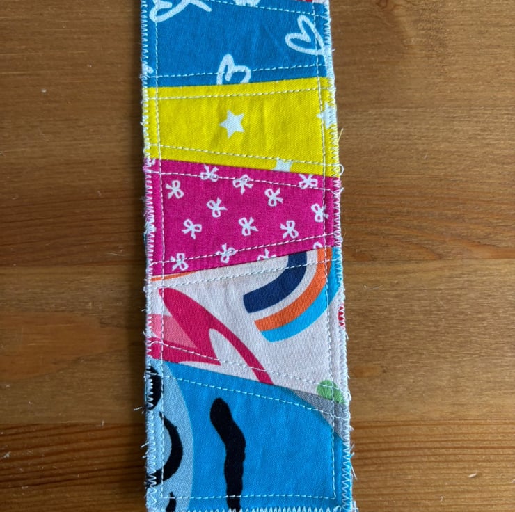 Introducing our delightful quilt patchwork fabric bookmark, featuring a charming print in soothing blues! Measuring 18 cm by 5.5 cm, this bookmark is not only functional but also a stylish addition to your reading adventures. The lovely print fabric adds a whimsical touch, making it perfect for book lovers of all ages. Whether you're cozying up with your favourite novel or keeping your place in a study book, this bookmark will bring a smile to your face every time you turn the page. Treat yourself or gift it to someone special—because every reader deserves a little joy!