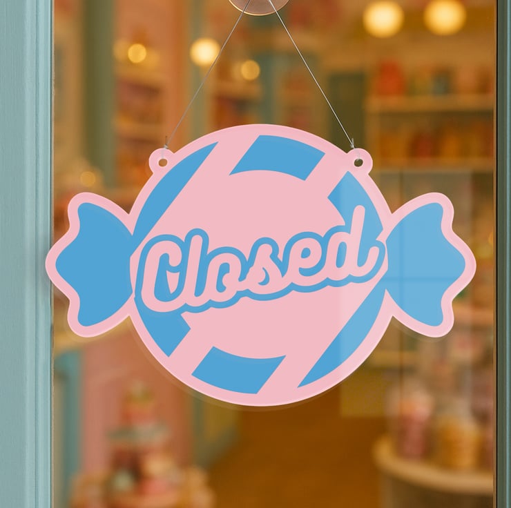 Add a pop of colour and charm to your shopfront with this playful Open & Closed Sign! Perfect for sweet shops, dessert parlours, cafés, and boutiques, this double-sided hanging sign brings a cheerful, candy-inspired twist to your window display.
