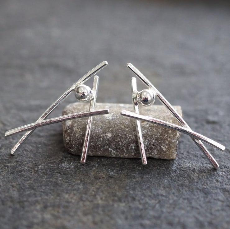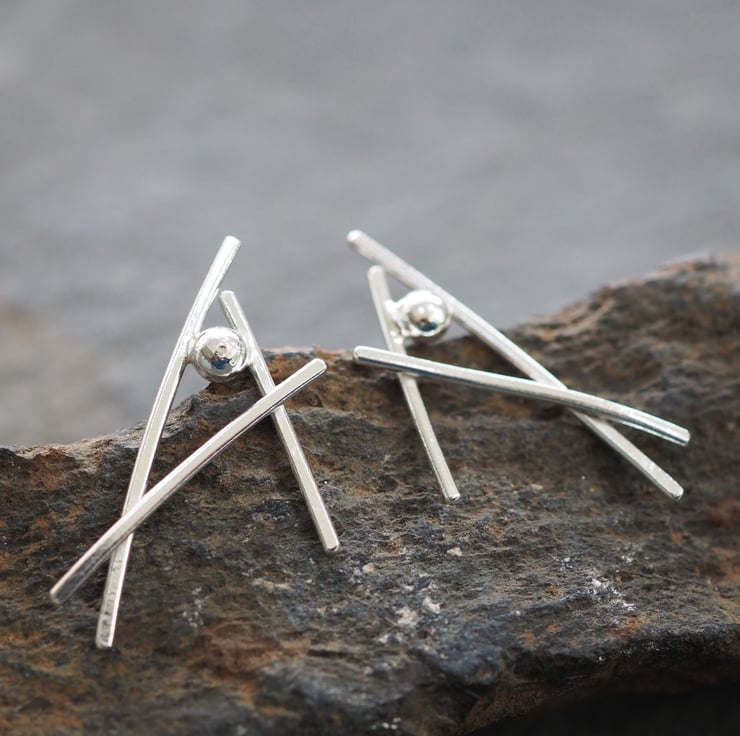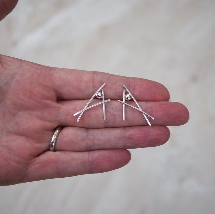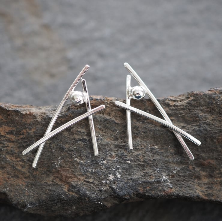Sculptural A shaped silver stud earrings hand crafted from quality Argentium silver 940.