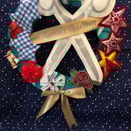 Sustainability and recycling is at the heart of this wreath using various materials to create a unique hanging wreath, suitable for any indoor hanging space.