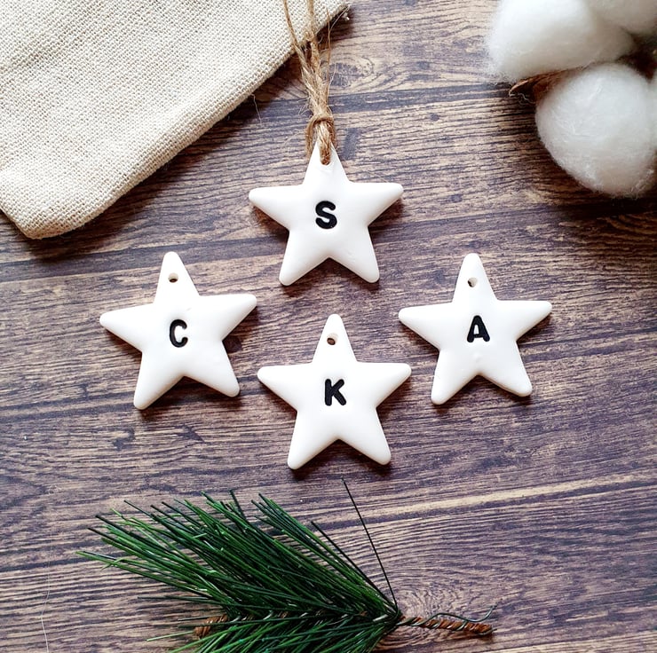 Hanging Monogrammed Star Decorations Christmas Tree Birthday Gift Initial Name