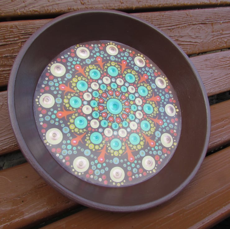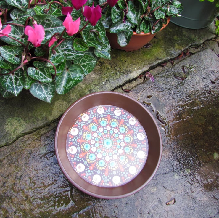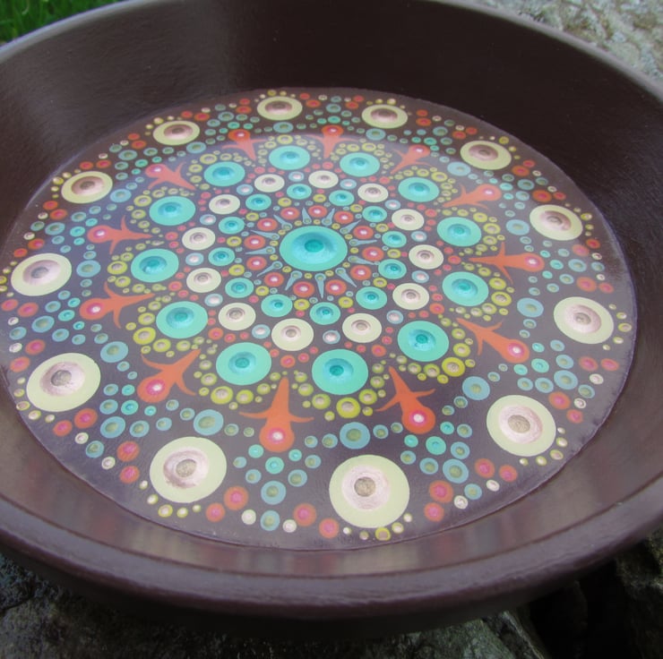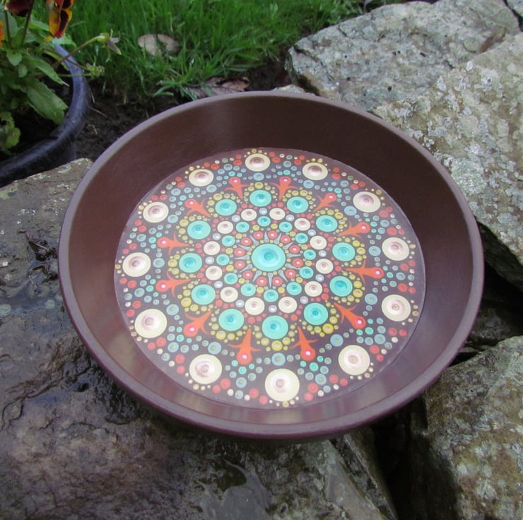 Bird Bath Garden Water Dish, Hand-Crafted Mandala Dot Art Decoration
