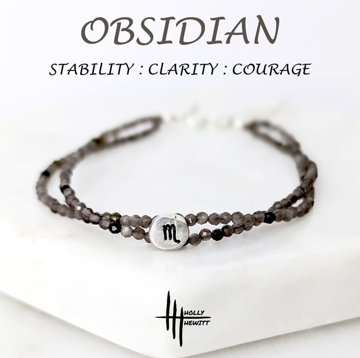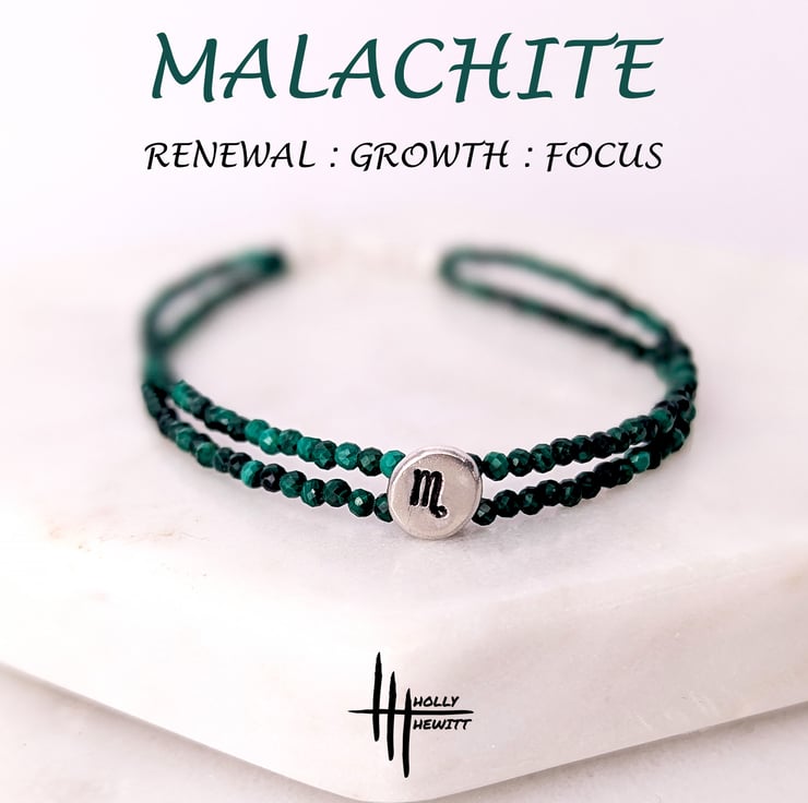 Handmade Scorpio zodiac charm bracelet. With Tourmaline, Citrine, Obsidian and Malachite faceted gemstone beads. The quality stones are completely natural and uniquely complement Sagittarian's personality traits.