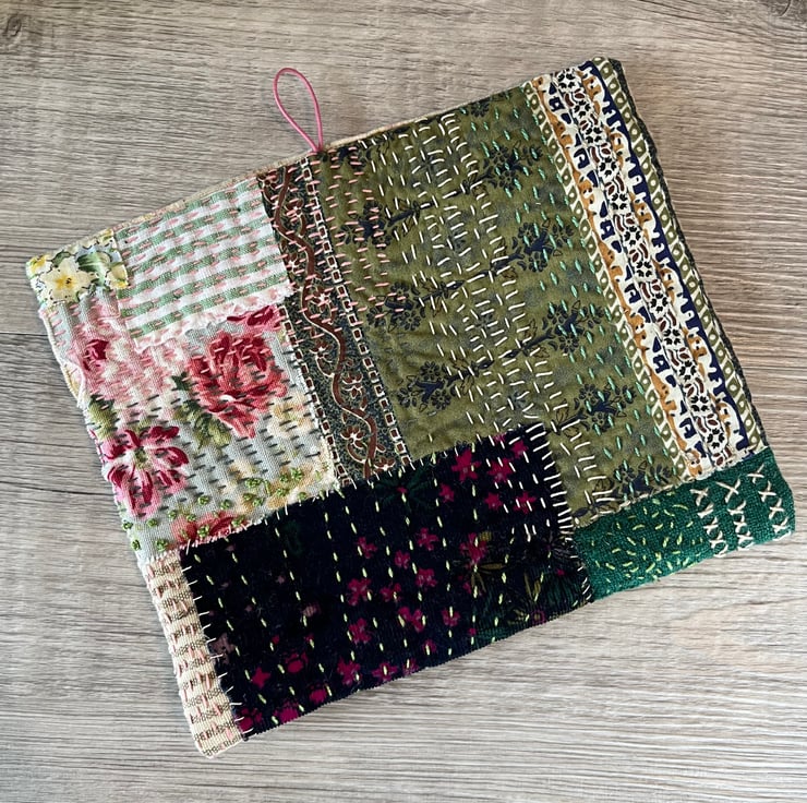 This tactile piece won't be replicated. It would make a wonderful individual present for someone who loves embroidery or sewing and anything individual and unique. I have described it as a clutch bag but it could equally be used as a make up bag, sewing pouch etc.