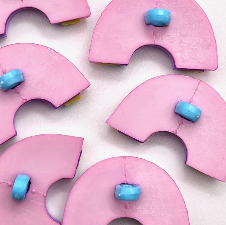 These Packs of 10 Rainbow Buttons have pastel coloured glossy stripes and are 25mm wide. Each Shank Back Button is perfect for your Sewing, Knitting and Crafting Makes - especially for your young-at-heart creations!